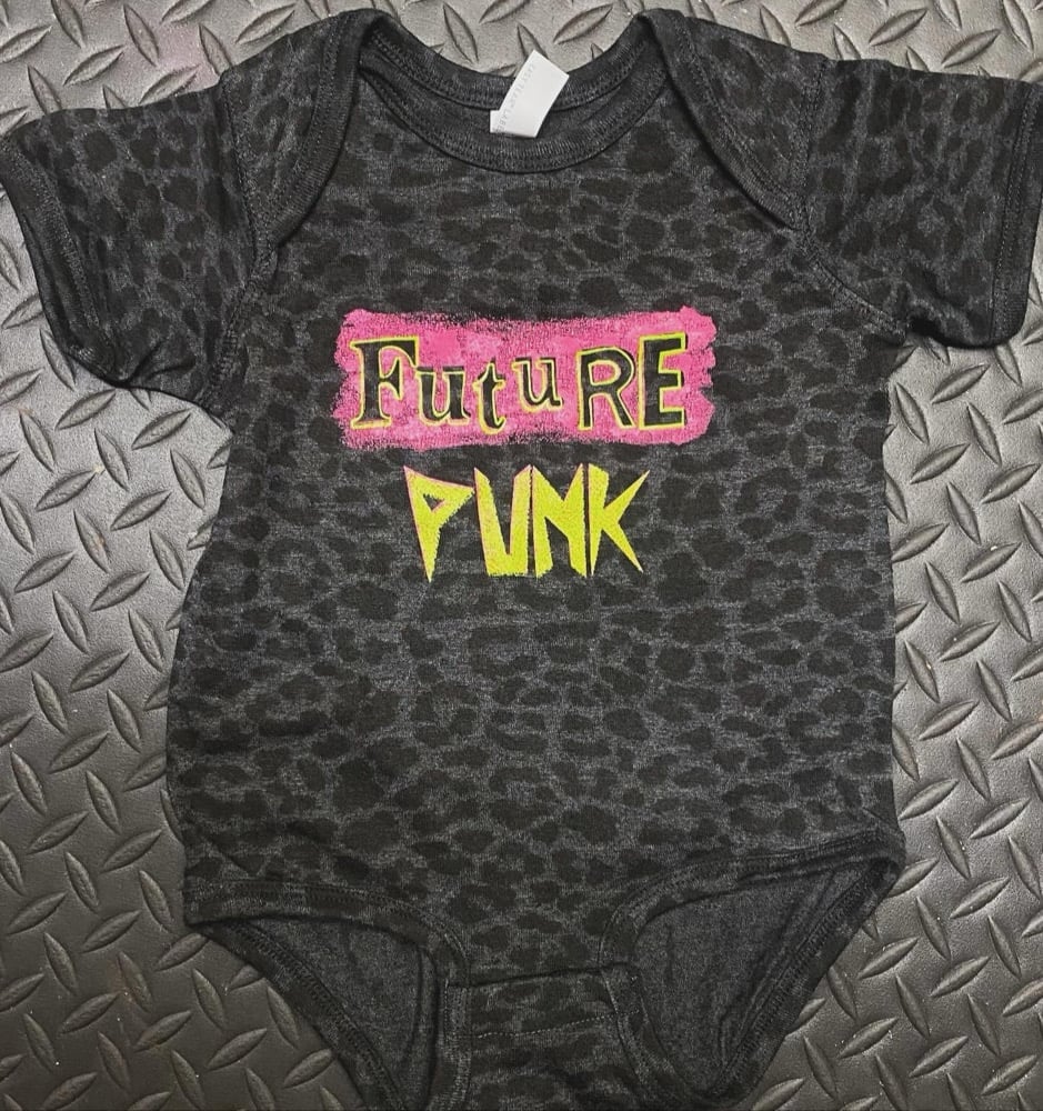 This cute little punk onesie is perfect for your future punk! Hand screen printed and designed by Death Valley Ltd.